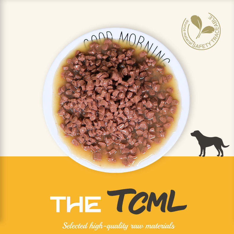 OEM อาหารเปียกที่เหมาะสมสำหรับลูกสุนัขและสุนัขผู้ใหญ่ขนาดใหญ่ชิ้นเนื้อเปียกห่อกระป๋องขนมปลาไก่คนรัก