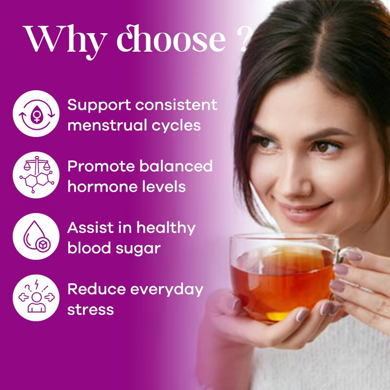 ชาสมุนไพรออร์แกนิค OEM สำหรับผู้หญิงที่มีภาวะ PCOS ช่วยเพิ่มความสมบูรณ์เพศ ผสมผลราสเบอร์รี่ ใบตำแย อัชวาคานธา ขิง ช่วยปรับสมดุลฮอร์โมนตามธรรมชาติ ชาเพื่อสุขภาพ