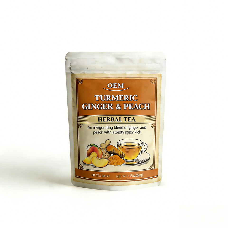 ชาสมุนไพรขมิ้นขิงพีช ออร์แกนิค รับรองโดย USDA เกรดอาหารเพื่อสุขภาพ รสชาติเผ็ดร้อน สดชื่น บรรจุ 68 ซองชา ขนาด 1.8 ออนซ์