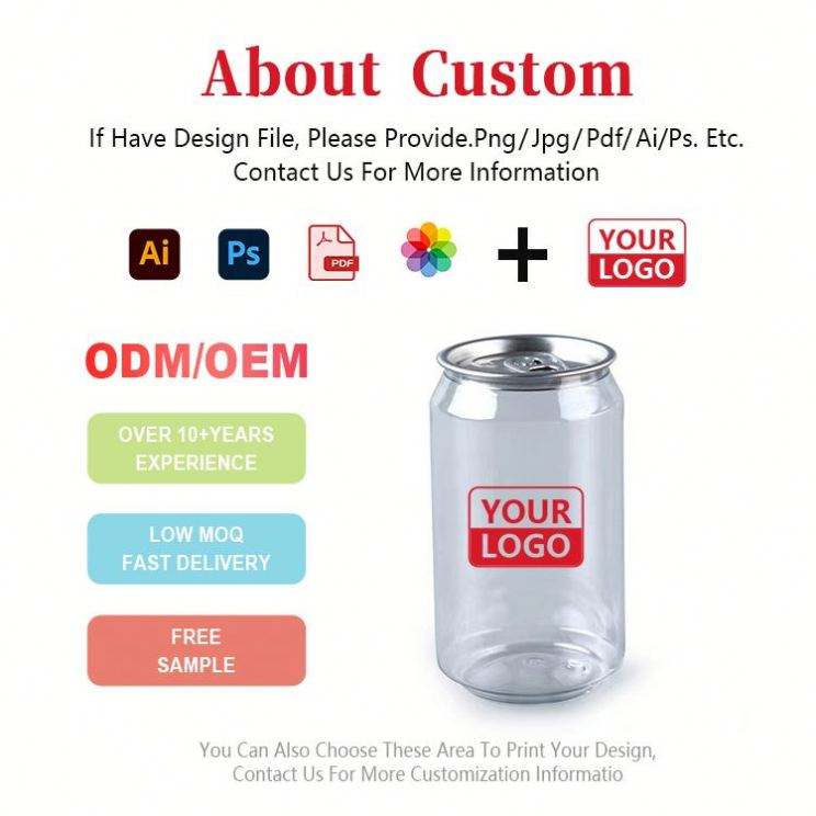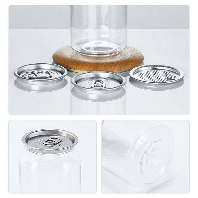 ขวดพลาสติกใสสำหรับใส่เครื่องเทศแบบ OEM พร้อมฝาอลูมิเนียมพิมพ์โลโก้ตามสั่ง ขวดน้ำผลไม้ โซดา กาแฟ แก้วพลาสติก
