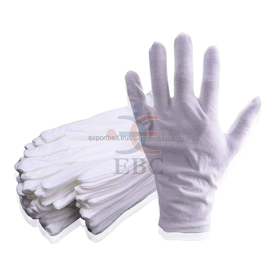 ถุงมือผ้าฝ้ายสีขาว OEM สำหรับใช้ในชีวิตประจำวัน ระบายอากาศได้ดี กันลื่น เหมาะสำหรับงานพาเหรด พิธีต่างๆ คนขับรถ พนักงานเสิร์ฟ ตรวจสอบงาน ทำด้วยมือ ติดกระดุมแป๊ก