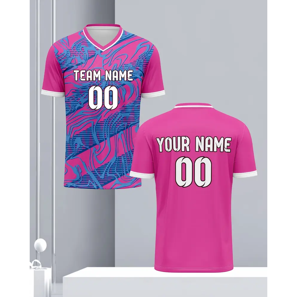 เสื้อฟุตบอลอเมริกันสีชมพูฟ้าสั่งทำพิเศษ พิมพ์ลายดิจิตอลแบบระเหิดคุณภาพพรีเมียม เสื้อครอปท็อปทีมฟุตบอลคุณภาพพรีเมียม