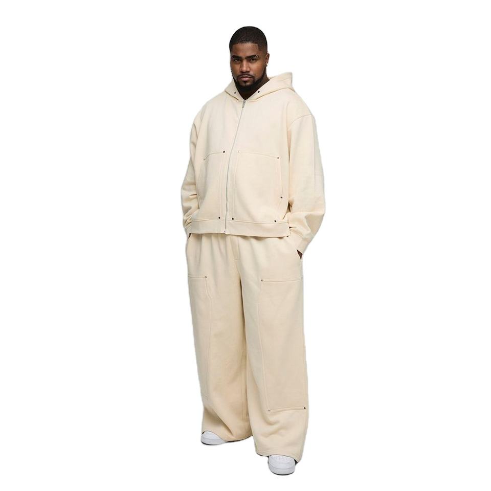 ชุดวอร์มมีซิปรูดทำจากผ้าเฟรนช์เทอร์รี่500GSM ขนาดพิเศษชุดวอร์มงานช่างไม้ปักลายหินและกางเกงขายาวตามสั่ง