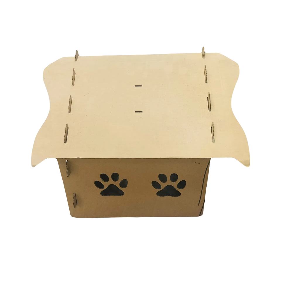 บ้านแมวแบบพกพา OEM ทำจากกระดาษลูกฟูก ทนทาน พร้อมที่ลับเล็บแมว รูปทรงกล่องสี่เหลี่ยม สำหรับความบันเทิงของแมว