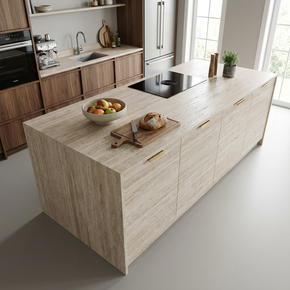 เคาน์เตอร์ครัวหินควอตซ์เทียมพิมพ์ลาย 3 มิติ คุณภาพพรีเมียม สีเบจเหลือง สำหรับโรงแรม บ้าน ครัว บาร์ ตู้