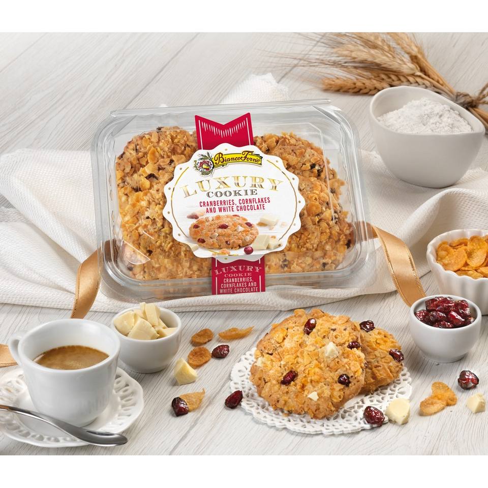 คุกกี้กรุบกรอบพรีเมียม OEM ผสมแครนเบอร์รี่ คอร์นเฟลกส์ และไวท์ช็อกโกแลต | ผู้จัดจำหน่ายวัตถุดิบธรรมชาติแบบขายส่ง