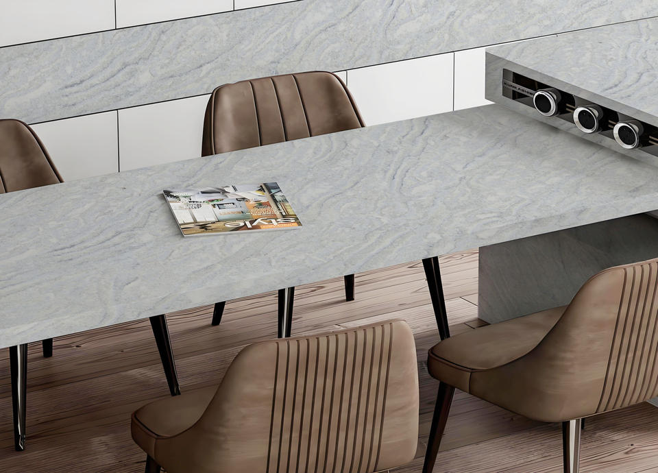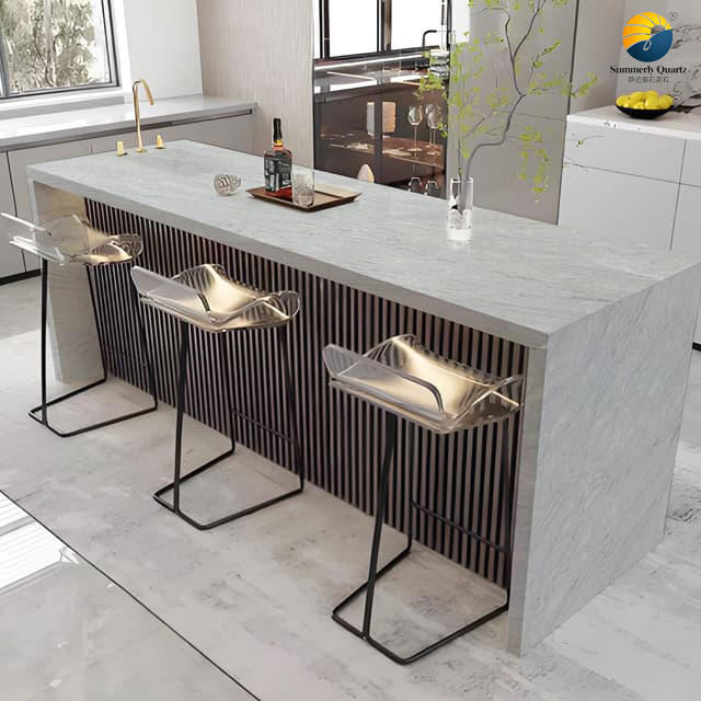 แผ่นควอตซ์สีเขียวอควาขัดเงาด้วยมือคุณภาพพรีเมียมแบบ OEM สำหรับเคาน์เตอร์หินอ่อนคาร์ราร่าสไตล์โมเดิร์นสำหรับภายนอกอาคาร เหมาะสำหรับห้องน้ำและเคาน์เตอร์แบบเกาะ