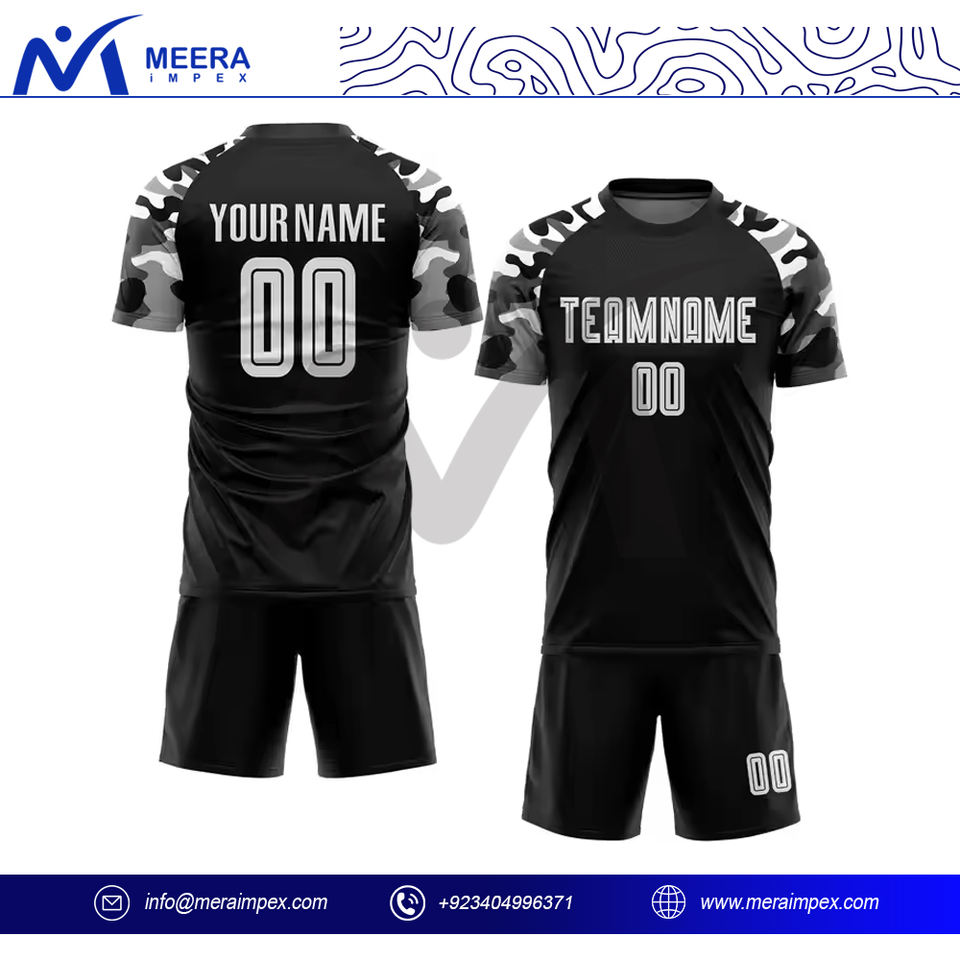 เสื้อฟุตบอลสีดำสำหรับผู้ชายเสื้อฟุตบอลผ้าโพลีเอสเตอร์เข้ารูป100% งาน OEM