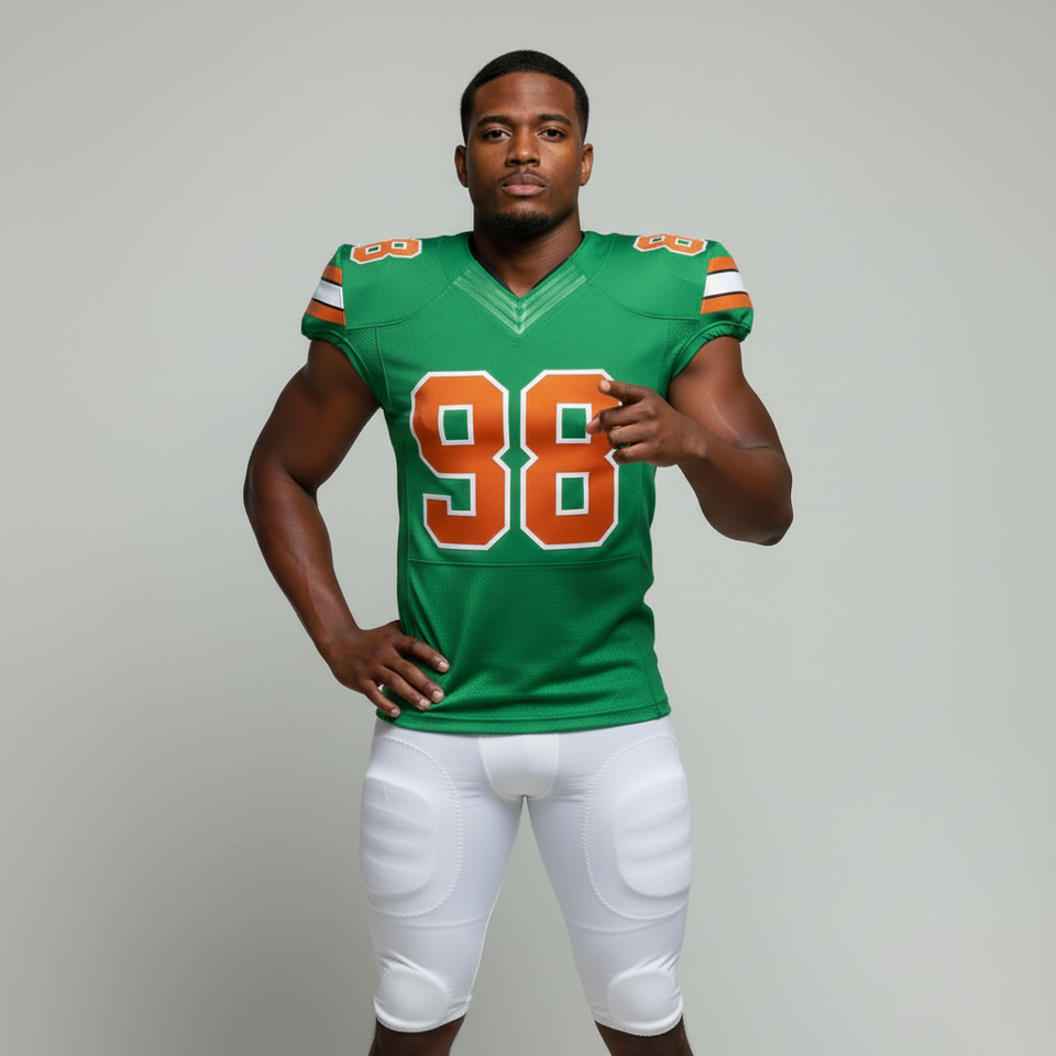 ชุดยูนิฟอร์มอเมริกันฟุตบอลแบบซับลิเมชั่นคุณภาพพรีเมียม OEM แขนสั้น ระบายอากาศ แห้งเร็ว ต้านเชื้อแบคทีเรีย ไซส์พลัส ชุดสั่งทำพิเศษ