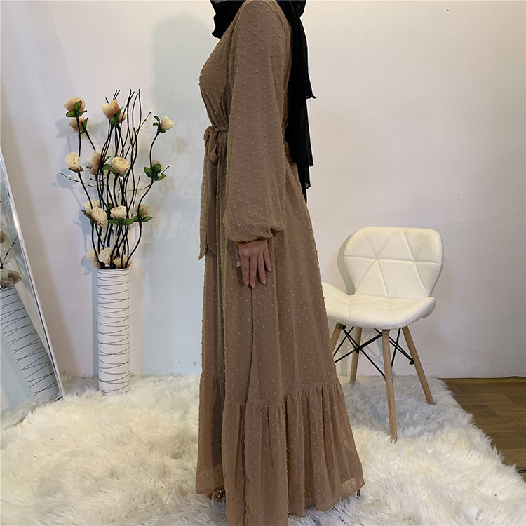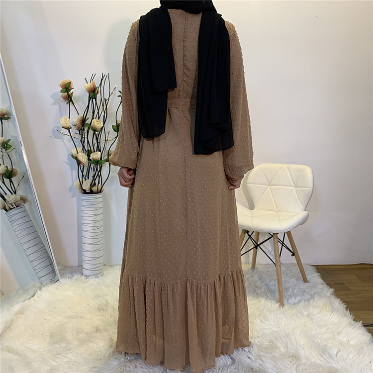 ชุดอาบายะห์มุสลิมตุรกีคุณภาพพรีเมียมแบบขายส่งจากโรงงานพร้อมเข็มขัด ผ้าชีฟองลายจุด สำหรับผู้หญิง สไตล์ดูไบ