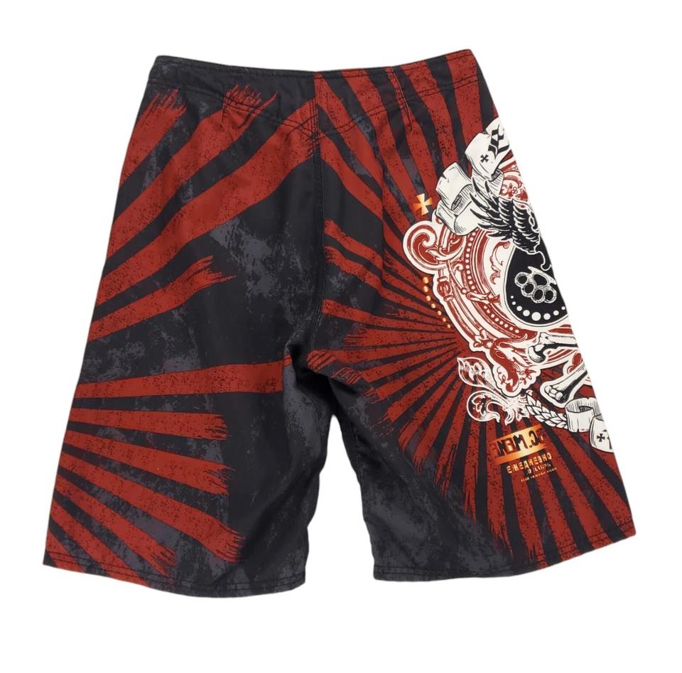 กางเกงขาสั้น MMA พิมพ์ลาย OEM ราคาถูกติดฉลากส่วนตัวสั่งพิมพ์ชื่อโลโก้และสปอนเซอร์ได้ตามต้องการ
