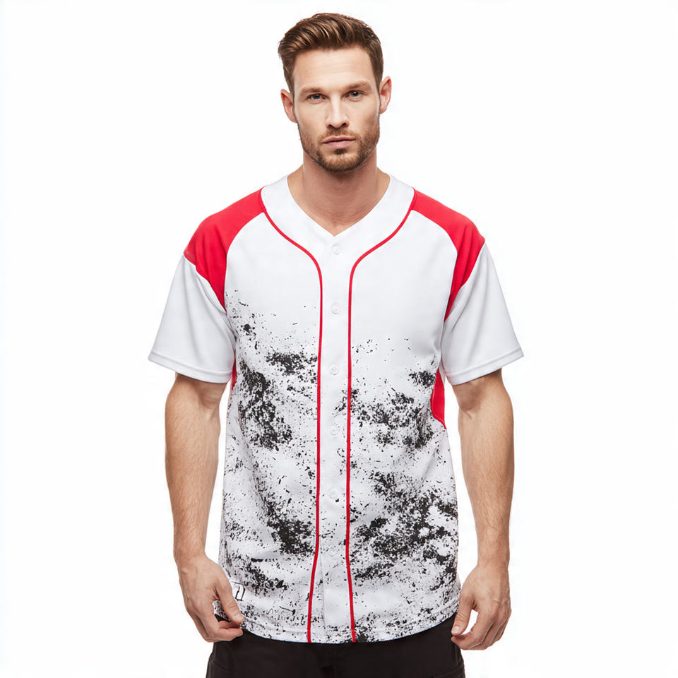 เสื้อเบสบอลคอวีพิมพ์ลาย OEM สำหรับผู้ชาย เสื้อซอฟต์บอลโพลีเอสเตอร์ 100% เสื้อเบสบอลแบบซับลิเมชั่นสั่งทำพิเศษสำหรับผู้ชาย
