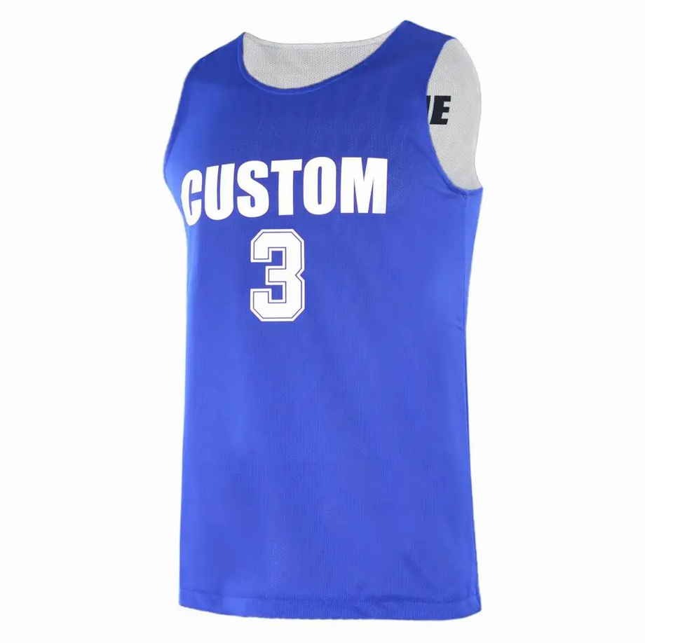 ชุดบาสเก็ตบอลผู้ชายแบบ OEM พิมพ์ลายตามสั่ง สีฟ้าอ่อน ผ้าตาข่ายแบบกลับด้านได้ สำหรับผู้ใหญ่ ชุดเสื้อและกางเกง ป้องกันแบคทีเรีย แห้งเร็ว ป้องกันรังสียูวี สำหรับฤดูร้อน