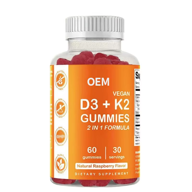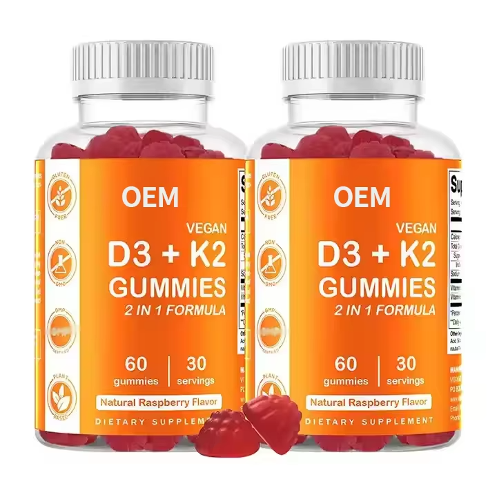 วิตามินกัมมี่สูตรพรีเมียม 2-in-1 ดีไซน์ OEM สำหรับผลิตภัณฑ์ฉลากส่วนตัว วิตามินดี3และคี2 รูปแบบกัมมี่
