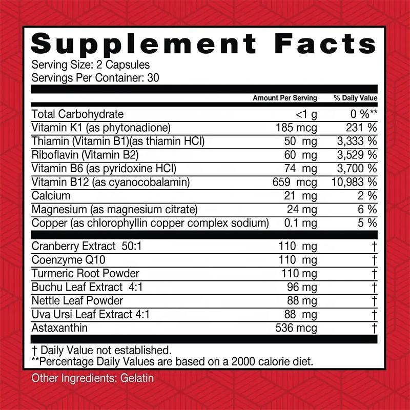 ส่วนผสมหลัก:วิตามิน B12 B6, แมกนีเซียมซิเตรท, โคเอนไซม์ Q10, สารสกัดแครนเบอร์รี่