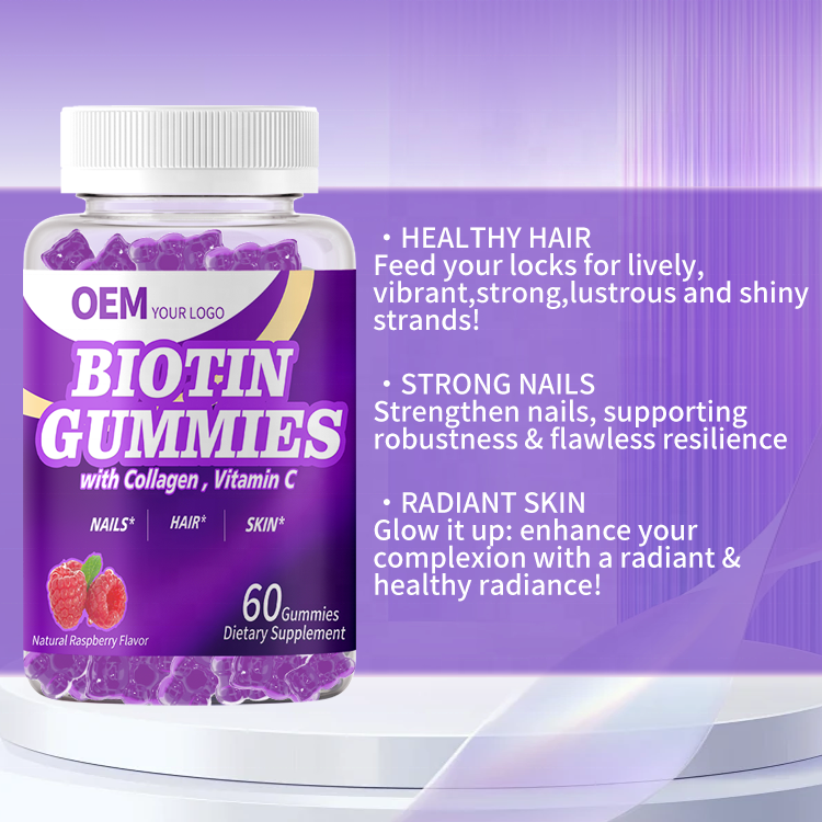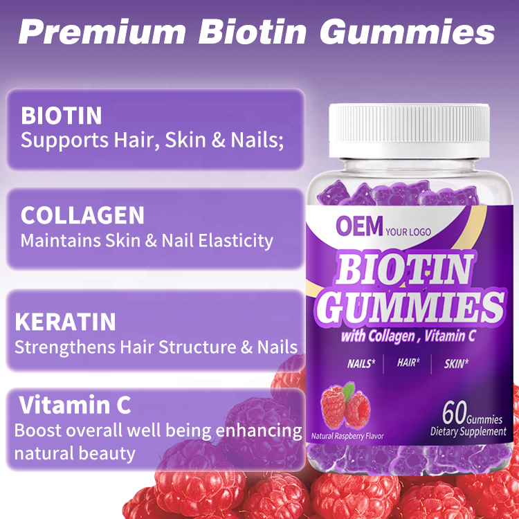 วิตามินกัมมี่ไบโอตินสำหรับผม ผิว และเล็บ สูตรเข้มข้นพิเศษ 10000mcg สำหรับผู้ทานมังสวิรัติ ยี่ห้อ OEM รับผลิตแบรนด์ส่วนตัว