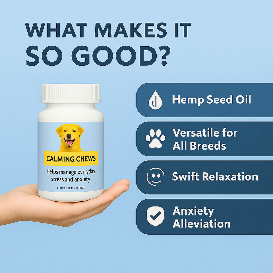 อาหารเสริมสำหรับสุนัขแบบเคี้ยวชนิดนุ่ม สูตรลดความวิตกกังวล ช่วยผ่อนคลาย บรรเทาความเครียด สำหรับสัตว์เลี้ยง ยี่ห้อ OEM รับผลิตภายใต้แบรนด์ของคุณ