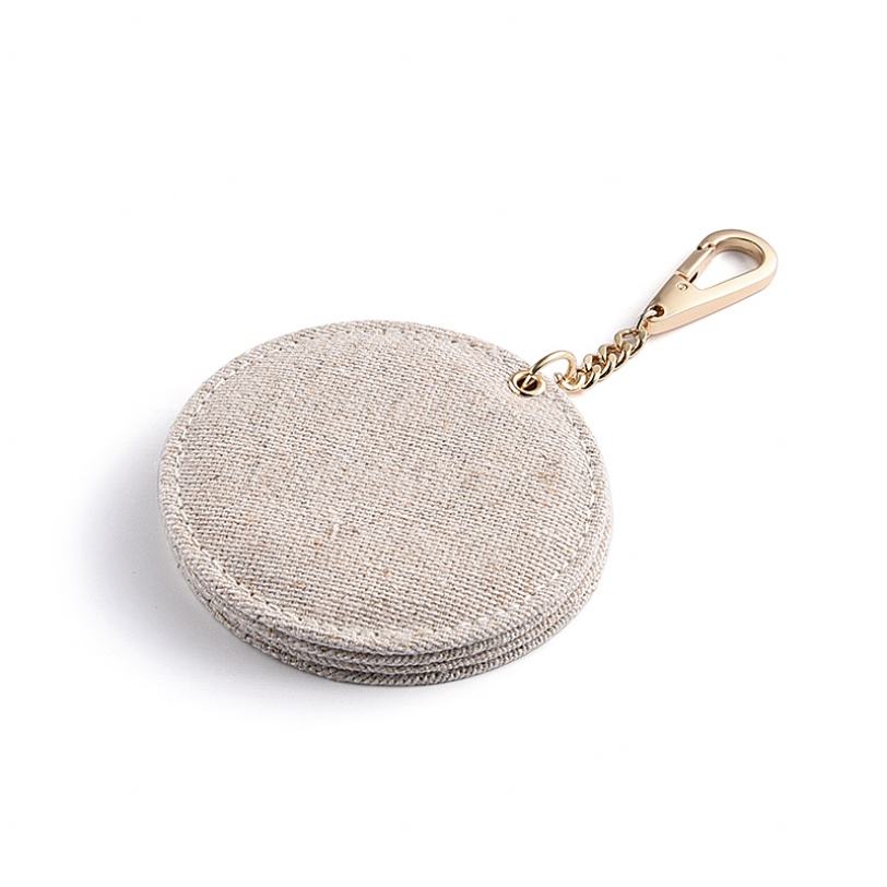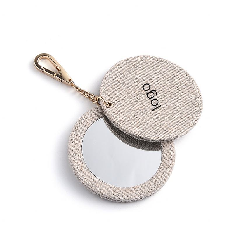 กระจกแต่งหน้าแบบพกพาขนาดเล็ก 70 มม. รูปทรงกลมสองด้าน พร้อมพวงกุญแจ รับผลิตแบบ OEM แบรนด์ส่วนตัว โลโก้สั่งทำได้