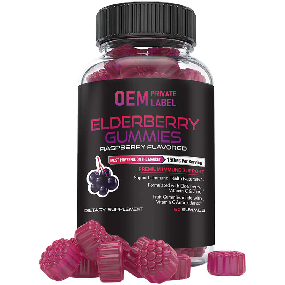 เยลลี่เอลเดอร์เบอร์รี่ OEM แบรนด์ส่วนตัว 100 มก. วิตามินซีและซิงค์สกัดเข้มข้น บำรุงภูมิคุ้มกันสำหรับผู้ใหญ่