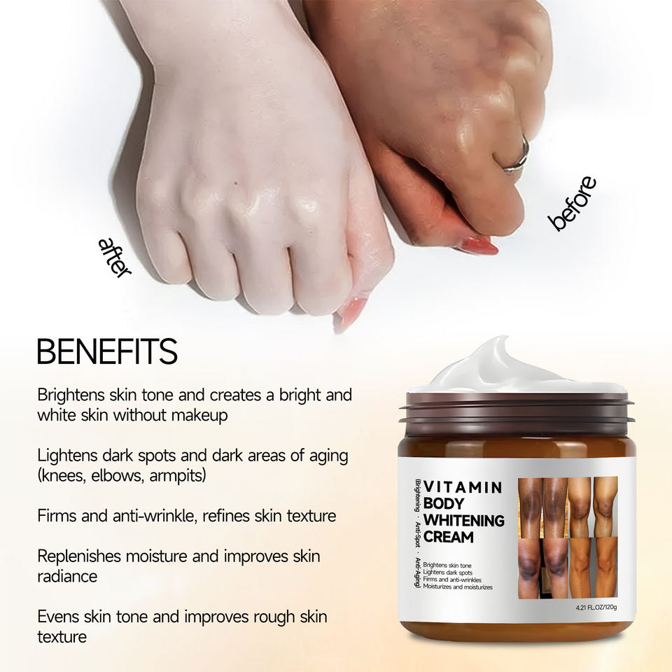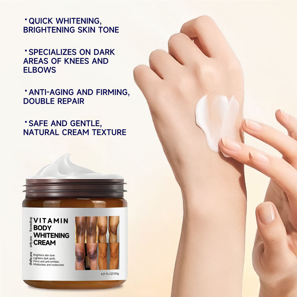 ครีมไวท์เทนนิ่งเข้มข้นสำหรับผิวหน้าและผิวกาย ลดเลือนจุดด่างดำ ริ้วรอยแห่งวัย บริเวณหัวเข่าและข้อศอก สูตรวิตามินเข้มข้น ผลิตภายใต้แบรนด์ OEM