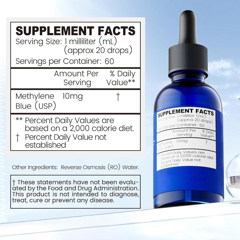 โรงงานผลิต OEM รับผลิตภายใต้แบรนด์ของลูกค้า เมทิลบลูแบบหยด บำรุงสมอง อาหารเสริมสำหรับมนุษย์ ขนาด 10 มล. อาหารเสริม My-Blue
