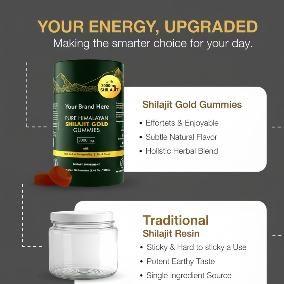 OEM ผลิตภัณฑ์ฉลากส่วนตัว ชิลลาจิตทองคำ ฮิมาลายัน กัมมี่ ขายส่ง สูตรอุดมด้วยแร่ธาตุและกรดฟูลวิค สำหรับพลังงานของผู้ใหญ่และสุขภาพภูมิคุ้มกัน