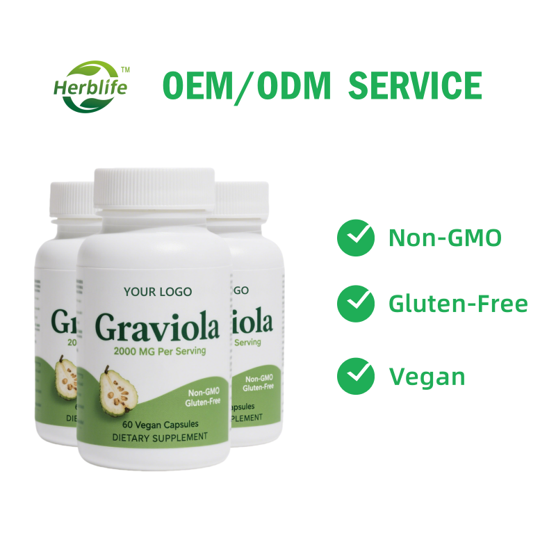 Graviola soursop สารสกัดจากใบ graviola ธรรมชาติ500มก. 650มก. ฉลากตามต้องการ