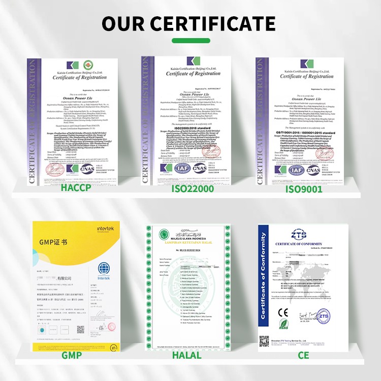 ใบรับรอง:GMP HACCP ฮาลาล ISO22000 ISO9001