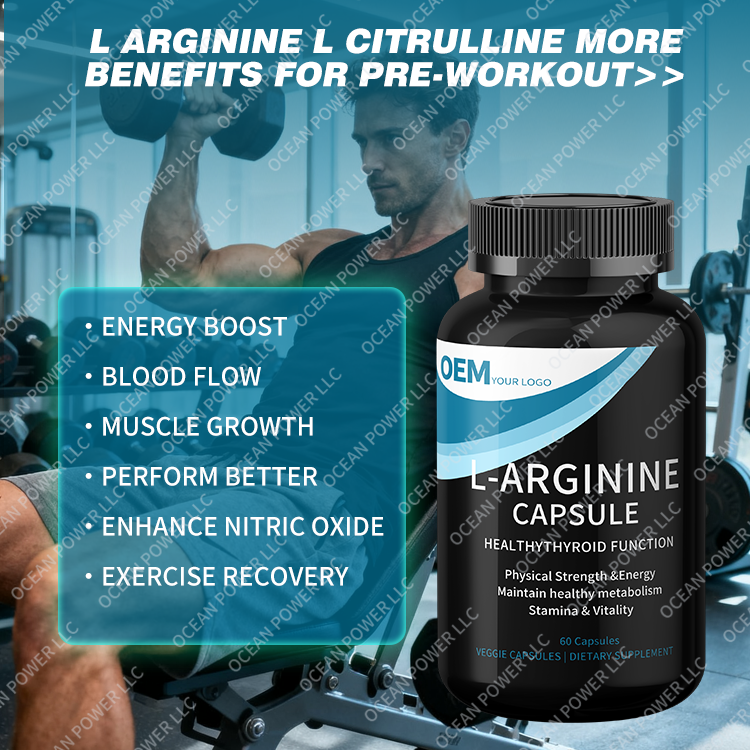 แคปซูลแอล-อาร์จินีน ผลิตภัณฑ์เสริมอาหารกรดอะมิโนสำหรับนักกีฬา ตราสินค้า OEM ปริมาณ 3000 มก. 1000 มก. แคปซูลแอล-อาร์จินีน