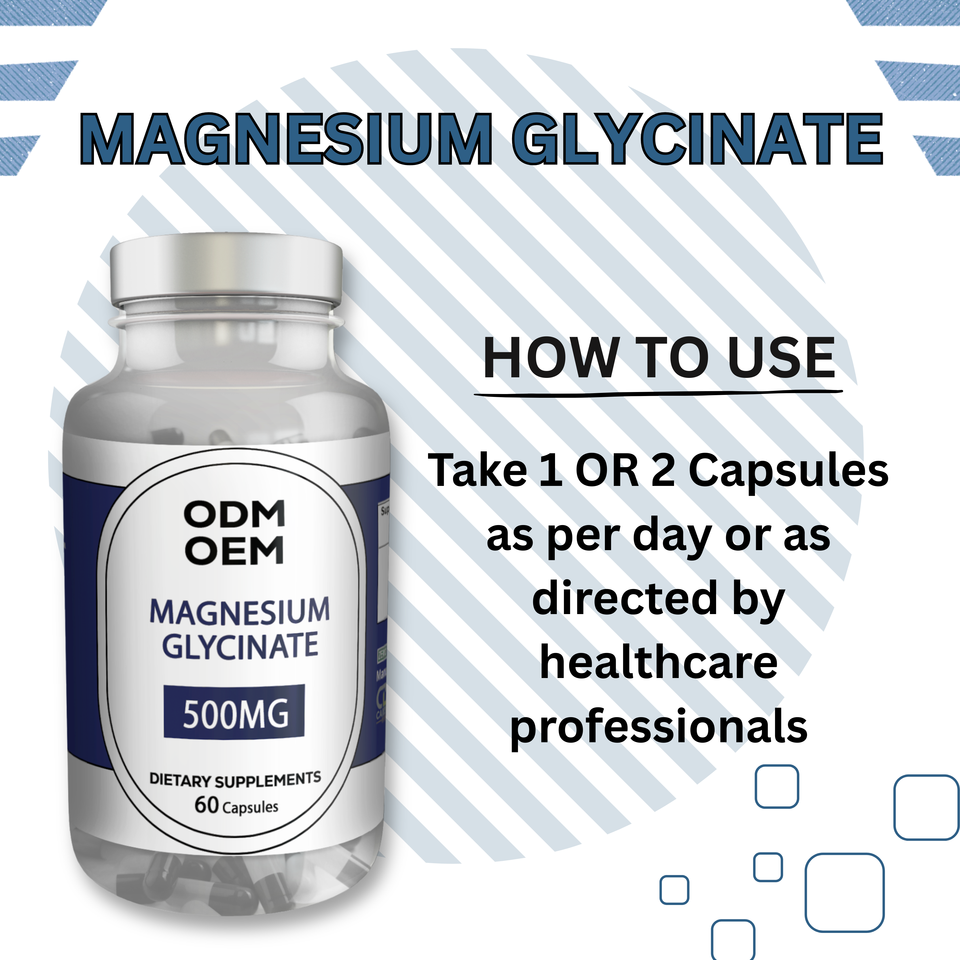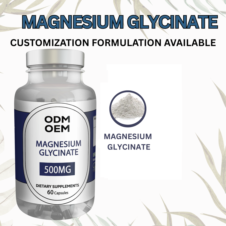 แคปซูลแมกนีเซียมไกลซิเนต สูตรแร่ธาตุเชลเลต คุณภาพสูง ผลิตภัณฑ์เสริมอาหารบริสุทธิ์ สำหรับ OEM และฉลากสินค้าส่วนตัว