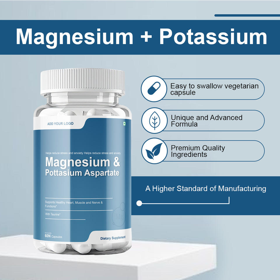 แคปซูลแมกนีเซียมโพแทสเซียมแอสปาร์เทต ผลิตภัณฑ์เสริมอาหารฉลากส่วนตัวสำหรับผู้ผลิต (OEM)