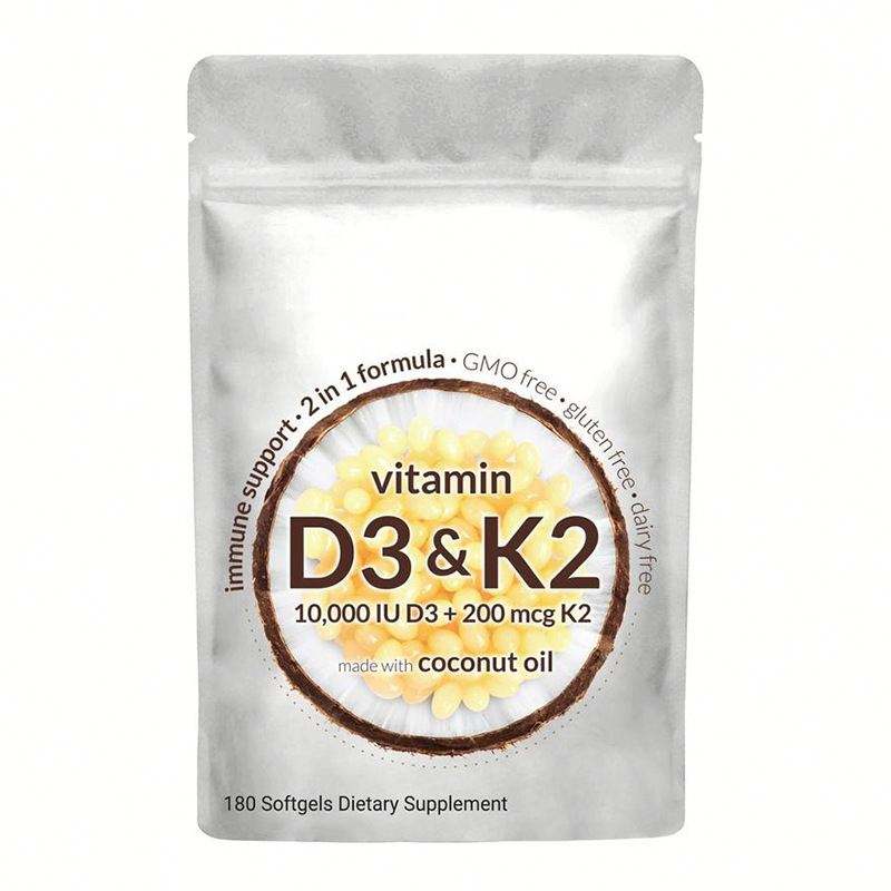 แคปซูลเจลเนื้อนุ่ม K2 D3วิตามินวีแกนแบบ5000iu ติดฉลากตามสั่ง