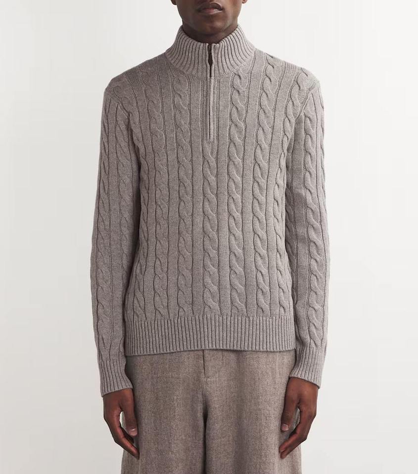 เสื้อสเวตเตอร์ถักไหมพรมคอเต่าแบบซิป ¼ สำหรับผู้ชาย ผลิตแบบ OEM / แบรนด์ส่วนตัว สไตล์คลาสสิก อุ่นสบายสำหรับฤดูหนาว เหมาะสำหรับตลาดสหรัฐอเมริกา