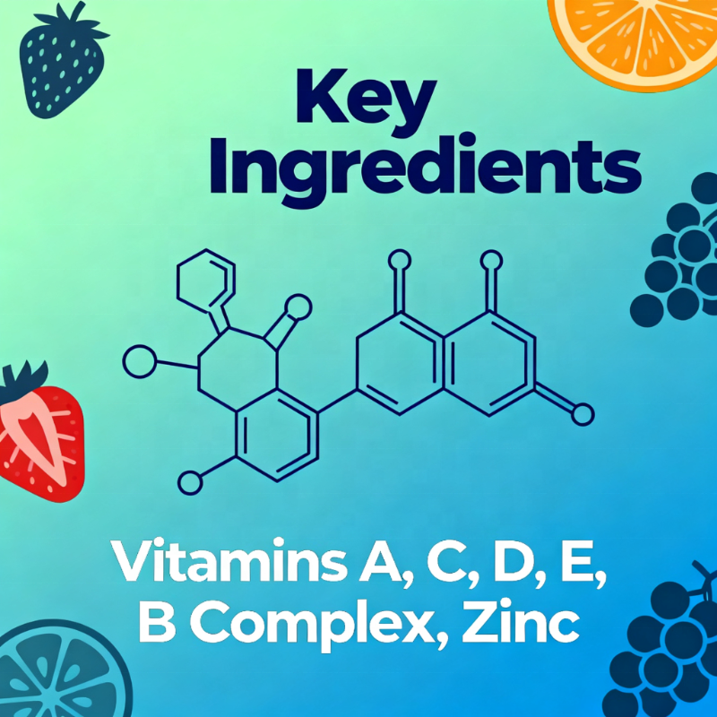 Main Ingredient:Vitamin A, Vitamin B, Vitamin C, Vitamin D, Folic Acid, Zinc