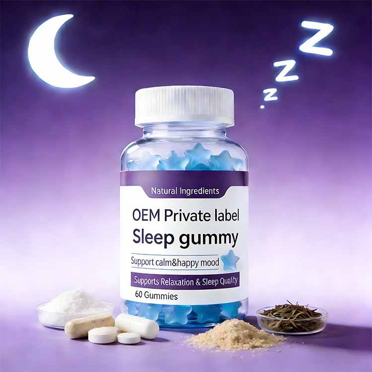 กัมมี่เห็ดเพื่อการนอนหลับ สูตรเฉพาะสำหรับ OEM แบรนด์ส่วนตัว ผสมเมลาโทนิน แอล-ธีอะนีน บำรุงความงามตามธรรมชาติและเสริมสร้างภูมิคุ้มกัน อาหารเสริมสำหรับการนอนหลับสำหรับผู้ใหญ่