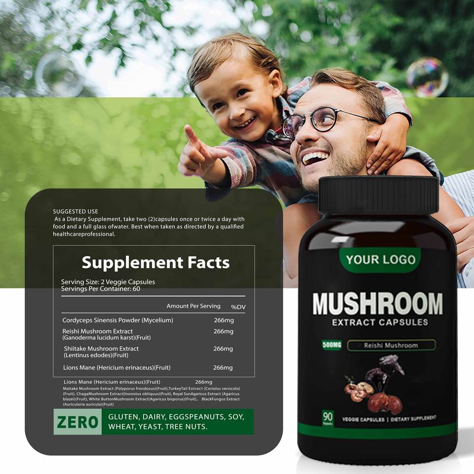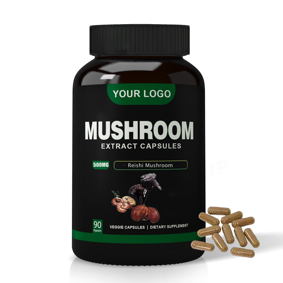 อาหารเสริมแบบแคปซูลสกัดจากเห็ดหลินจืออิออร์แกนิกฉลากส่วนตัว