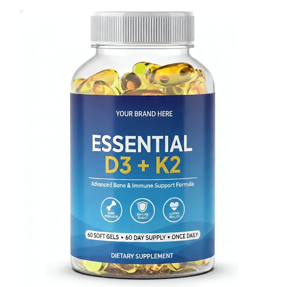 ผู้ผลิตวิตามินดี3 + เค2 แบบซอฟต์เจลสำหรับเสริมสร้างกระดูกและภูมิคุ้มกัน รับผลิตภายใต้แบรนด์ของลูกค้า (OEM) จำหน่ายส่ง