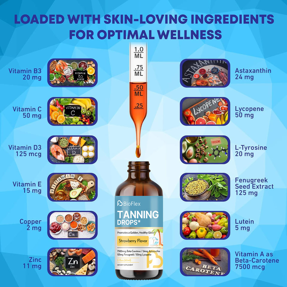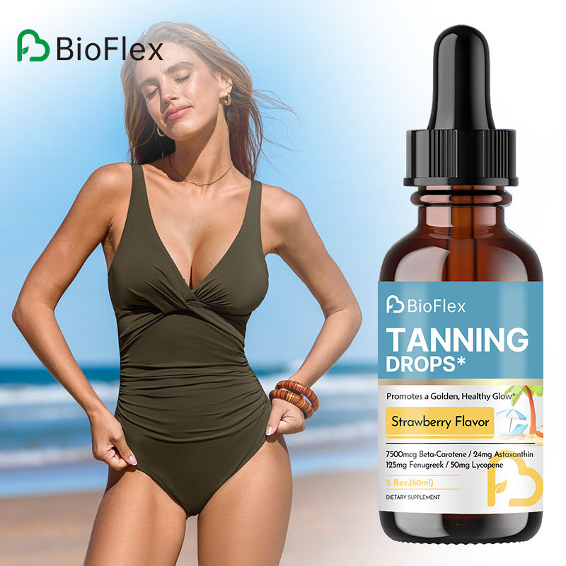 วิตามิน OEM แบรนด์ส่วนตัว น้ำยาหยดสำหรับผิวแทน 60 มล. ผสมแอสตาแซนธิน เมล็ดฟีนูกรีก ไลโคปีน และแอล-ไทโรซีน สำหรับผู้ใหญ่