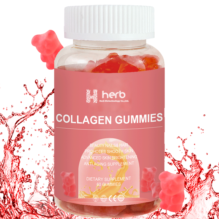 อาหารเสริมความงามสำหรับผู้ใหญ่ คอลลาเจนแบบกัมมี่ ยี่ห้อ OEM ฉลากส่วนตัว บำรุงผิวสวย 2 เม็ด/วัน 60 เม็ด/กล่อง