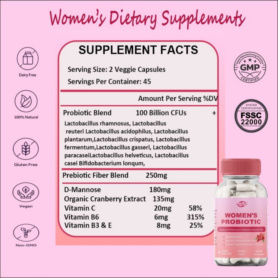 Product Name:Women's probiotic capsules 100 Billion CFU for vaginal health