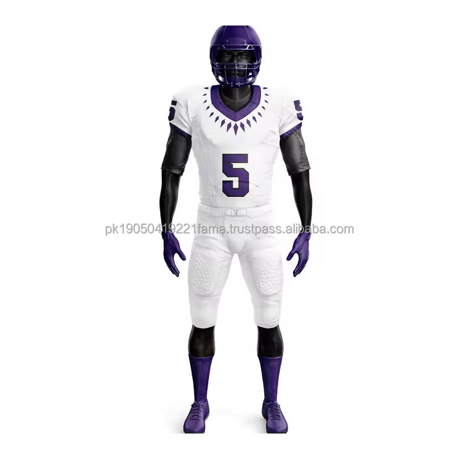 ชุดยูนิฟอร์มอเมริกันฟุตบอลแบบมืออาชีพสำหรับทีม OEM ออกแบบโลโก้ได้เอง คุณภาพสูง ระบายอากาศได้ดี พิมพ์ลายด้วยความร้อน สำหรับผู้ใหญ่ทุกเพศ