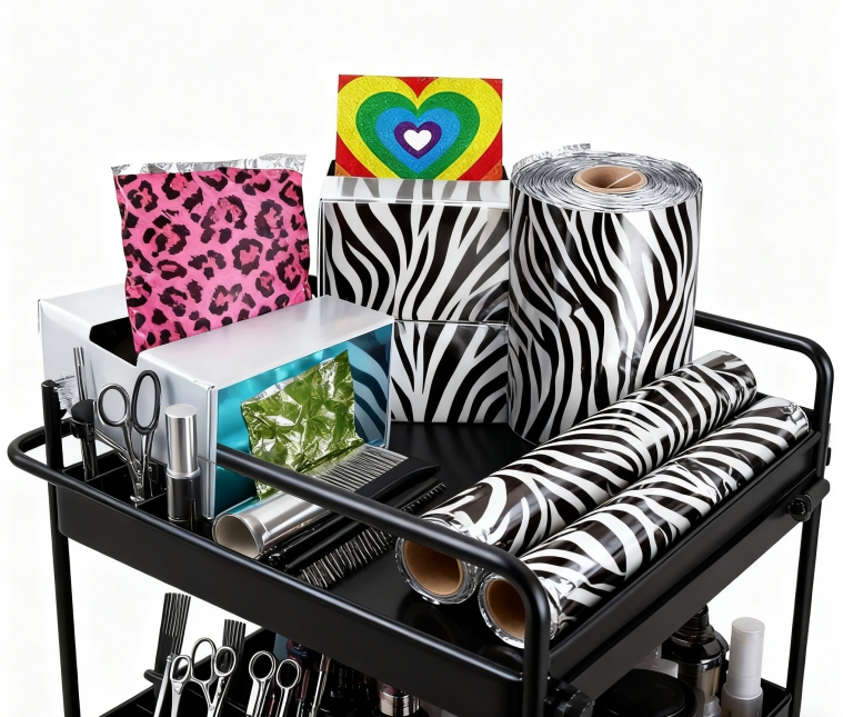 ฟอยล์อลูมิเนียมกันลื่นแบบนูนลาย OEM สำหรับมืออาชีพ พิมพ์ลายตามสั่ง สำหรับฟอยล์ทำสีผม ไฮไลท์ และย้อมสีผมในร้านเสริมสวย