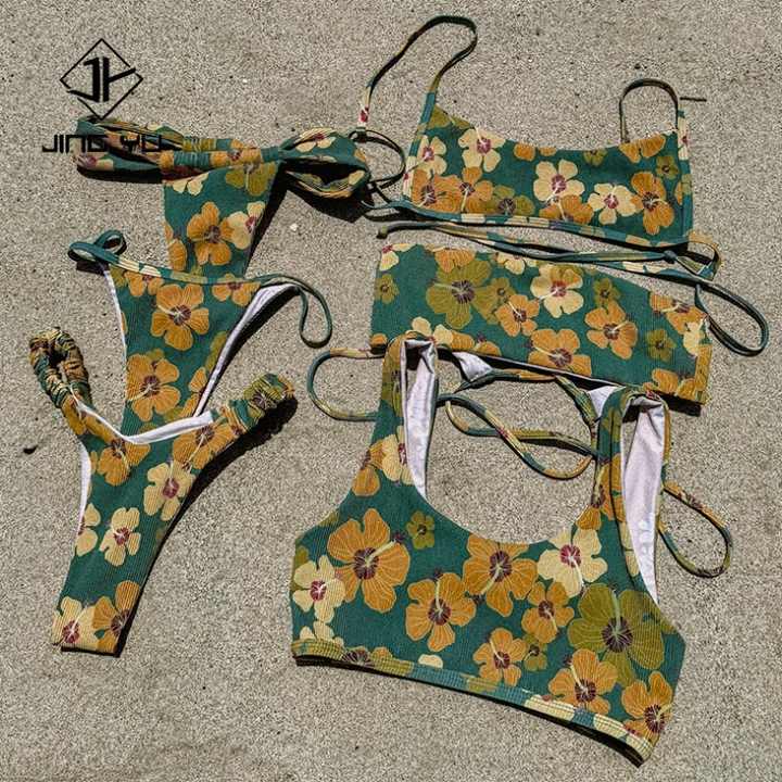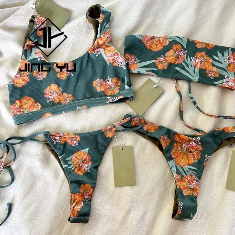 ชุดว่ายน้ำ OEM ระดับมืออาชีพ ผลิตจากผ้ารีไซเคิล ชุดชายหาด พิมพ์ลายสองด้านตามสั่ง ชุดบิกินี่ฮาวายสำหรับผู้หญิง