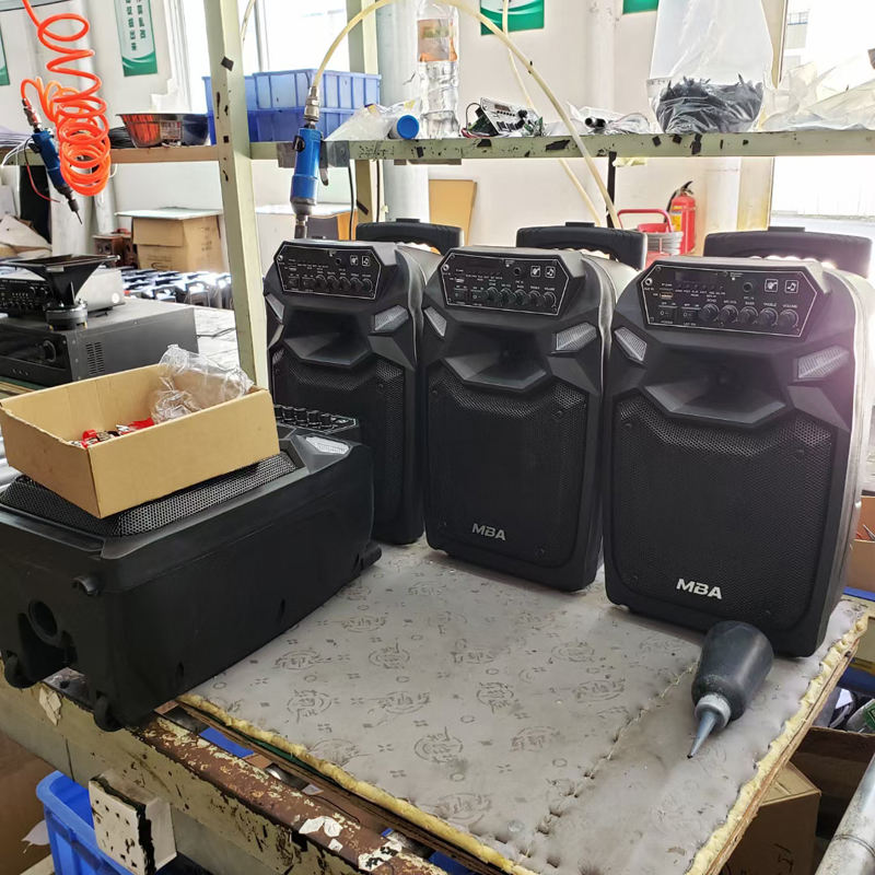 ลำโพงล้อลากไร้สายแบบพกพาสำหรับงานปาร์ตี้ ดีเจ พร้อมไฟ RGB LED ที่ชาร์จไร้สาย NFC โปรโมชั่น OEM ซับวูฟเฟอร์ 8 นิ้ว สำหรับคาราโอเกะ ขายดี