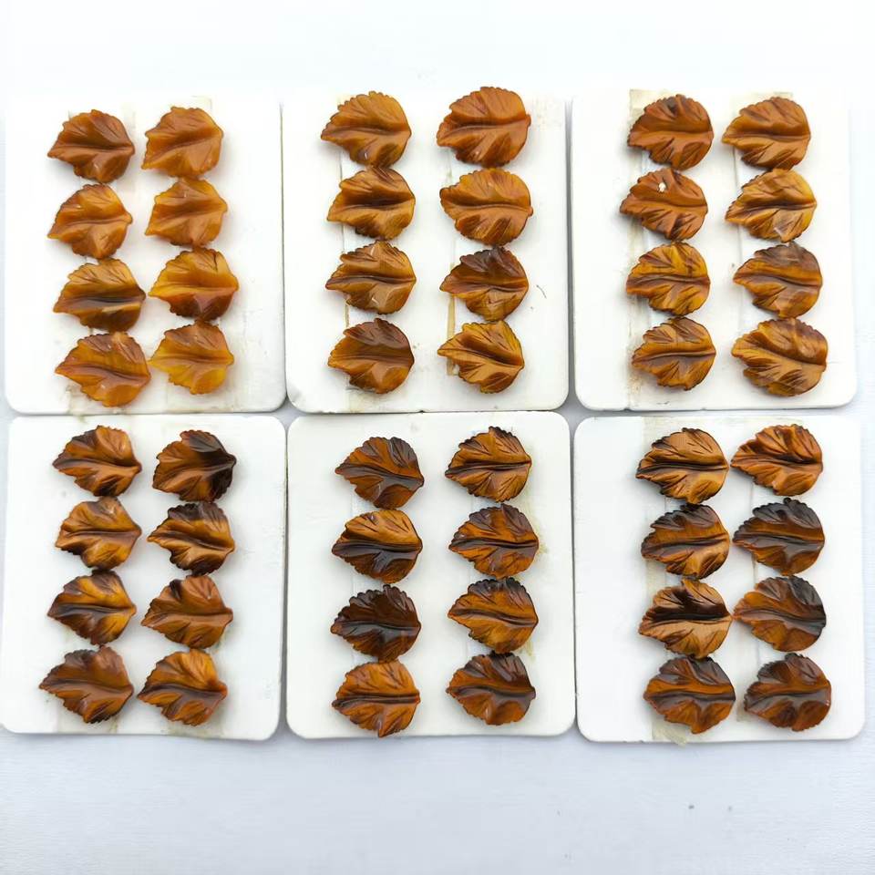 OEM โปรโมชั่นแฮนด์เมดบทความ Tigereye สีเหลือง L4 12X10มม. สีหินสีเหลืองธรรมดาใบสำหรับชื่นชม