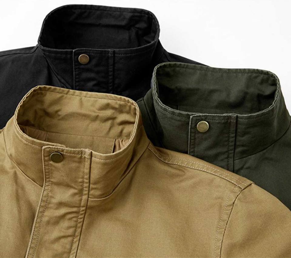 เสื้อแจ็คเก็ตคอตั้งผ้าฝ้ายแท้ OEM สำหรับผู้ชาย มีกระเป๋าหลายช่อง สไตล์ลำลองหลวมๆ สำหรับฤดูใบไม้ร่วงและฤดูหนาวปี 2025 เสื้อแจ็คเก็ตสตรีทแวร์