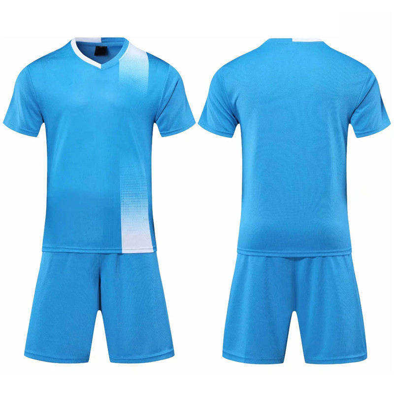 ชุดฟุตบอลโพลีเอสเตอร์แห้งเร็วแบบ OEM พร้อมโลโก้สั่งทำ เสื้อฟุตบอลสำหรับผู้ใหญ่และเด็ก