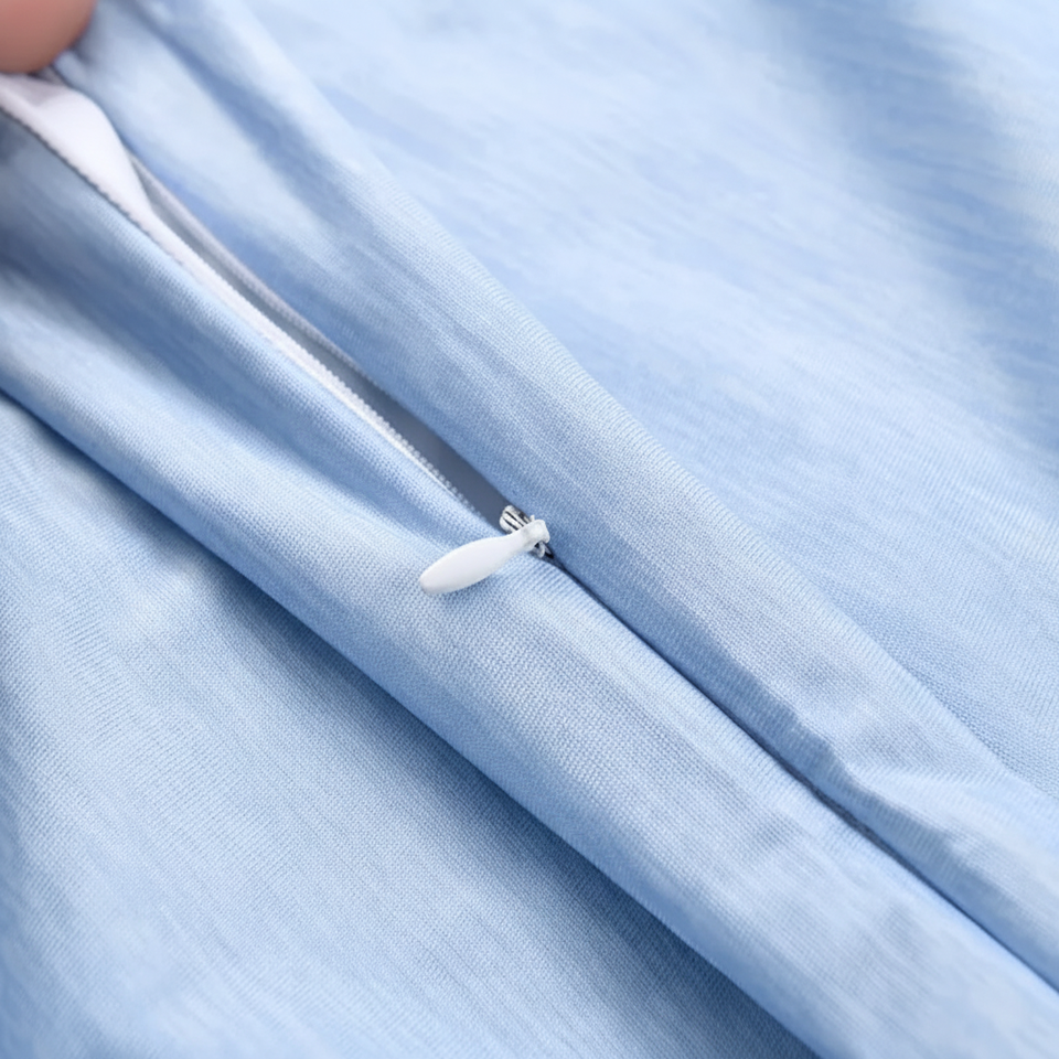 ปลอกหมอนถักทรงสี่เหลี่ยมผืนผ้า100% ผ้าโพลีเอสเตอร์ย้อมสีอ่อนสีฟ้าอ่อน