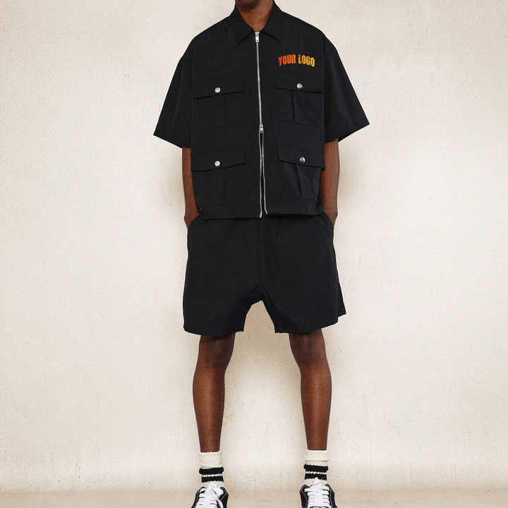 ชุดวอร์มสะท้อนแสง OEM สำหรับสตรีทแวร์ ผ้าไนลอนระบายอากาศ ชุดวอร์มจากโรงงาน OEM ชุดเซ็ตเสื้อแจ็คเก็ตกันลมและกางเกงขาสั้นไนลอนสำหรับผู้ชาย