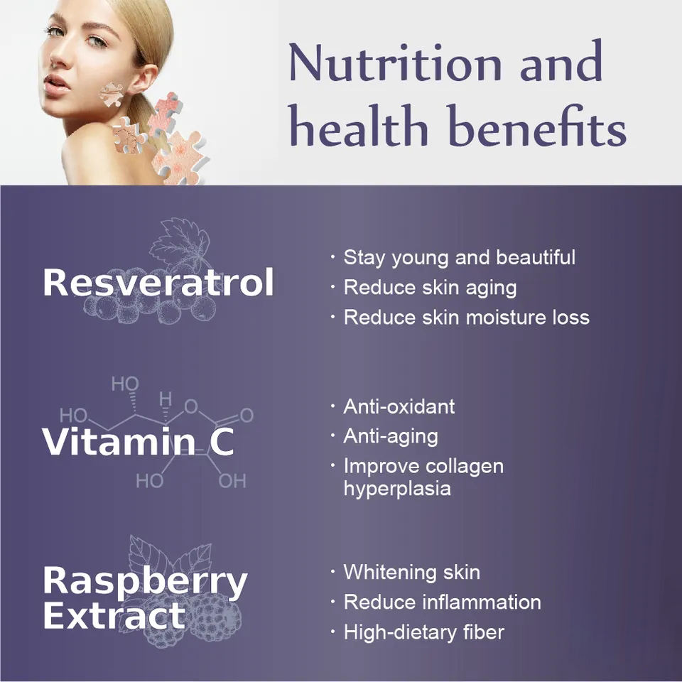 ส่วนผสมหลัก:คอลลาเจน, กรดไฮยาลูโรนิก, อีลาสติน, วิตามินซี
